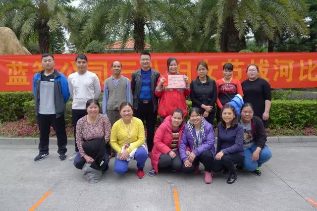 今天公司举办了庆三八妇女节拔河比赛,有一分厂队、二分厂队、三分厂队、LED队、质检班队、科室队和后勤队,共七个队伍,每个队伍由3男8女组成。
